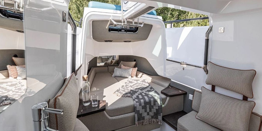A luxurious motor yacht known for its sleek, low-profile design and spacious interior. It features a large hydraulic swim platform, perfect for water sports and snorkeling, and a fully enclosed, light-filled sunroom with retractable glass roofs.